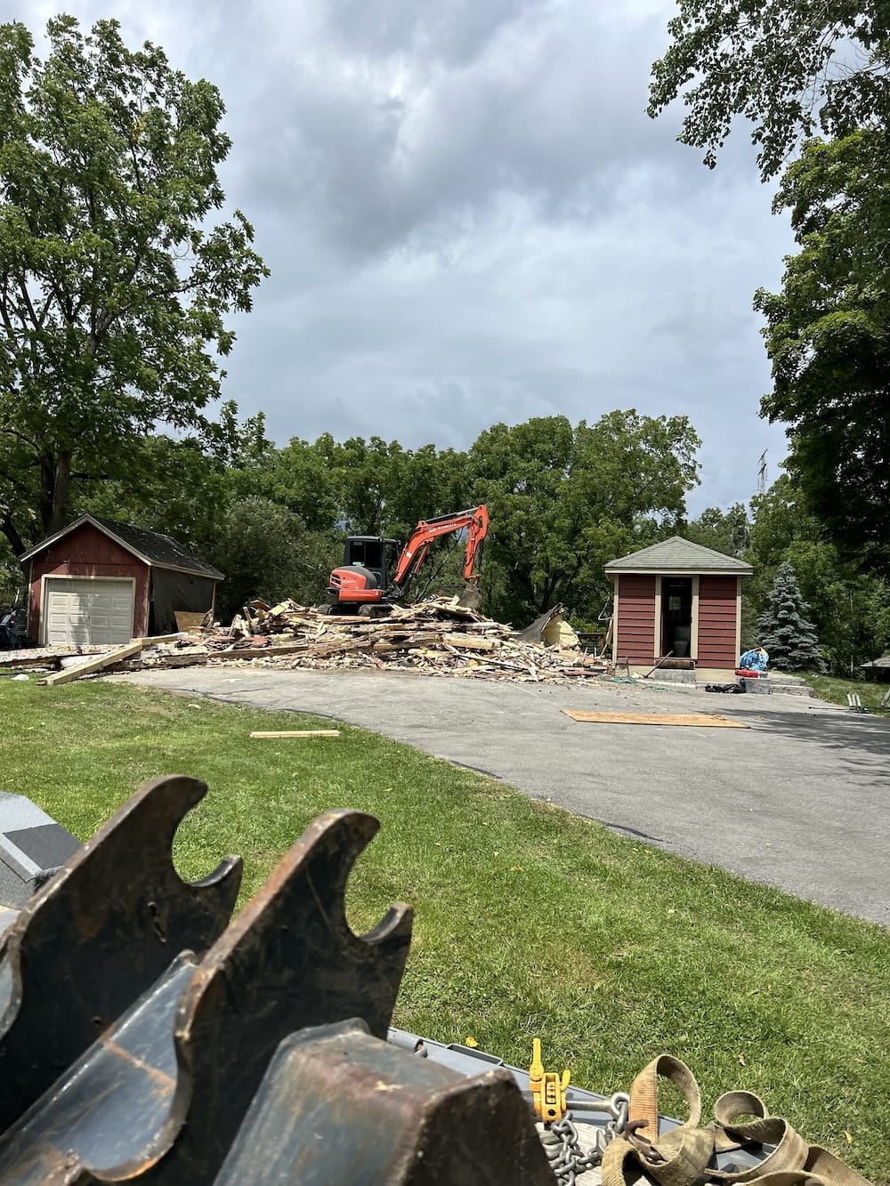 Garage Demo and Rebuild Garage On this project, we did a fit or full demo of the existing garage down to the foundation and rebuild and will be sided with James hardie board and batten cement, board siding and Black asphalt Shingles.